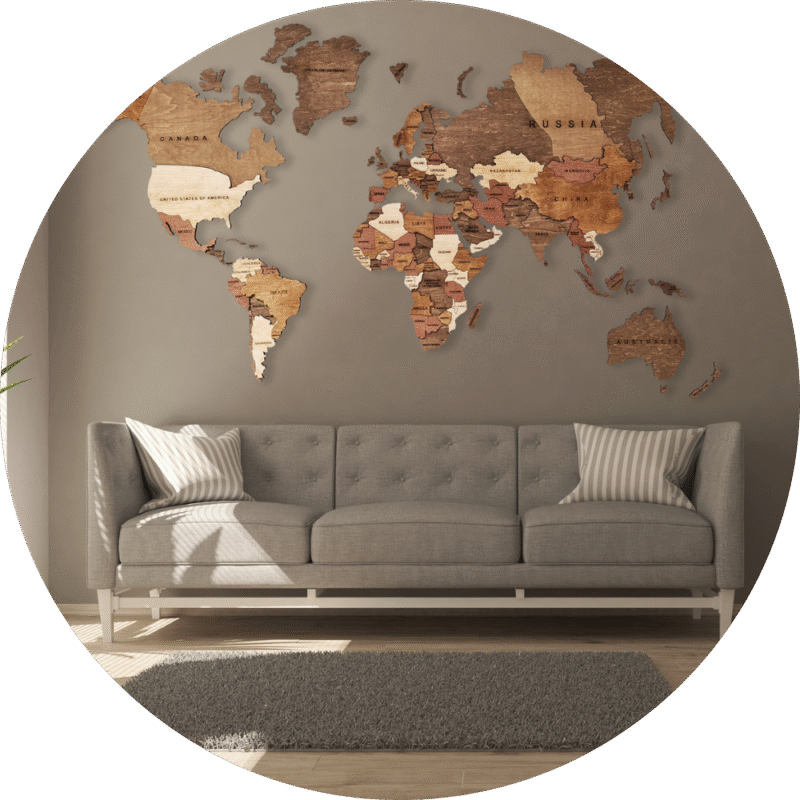 Transformez n'importe quel espace en une déclaration avec une carte du monde en bois fabriquée à la main - un mélange étonnant d'art, de voyage et de design.